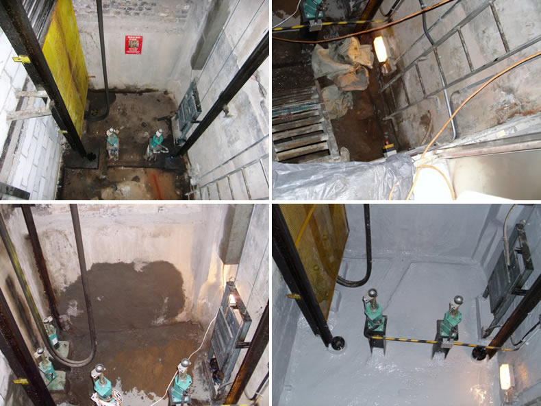 环氧树脂浆料的堵漏原理:该材料具有良好的延展性和弹性、遇水膨胀性,在进入到电梯井裂缝内部后遇水分化膨胀,堵塞漏水通道。同时该堵漏材料具有良好的弹性,可避免刚才防水层因伸缩运动产生开裂。